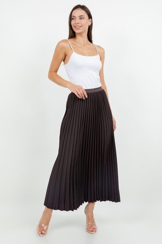 Elevate your wardrobe with this pleated long skirt, designed to grace your silhouette with elegant movement and timeless style. Its finely crafted pleats create a refined texture that enhances every step, making it perfect for both sophisticated evenings and chic daytime occasions. Pair it effortlessly with tailored tops or delicate blouses to embody grace and poise.