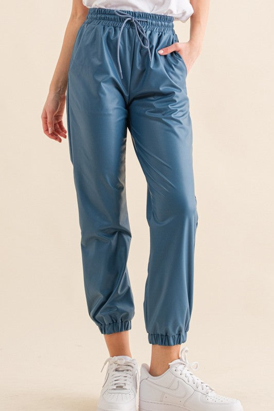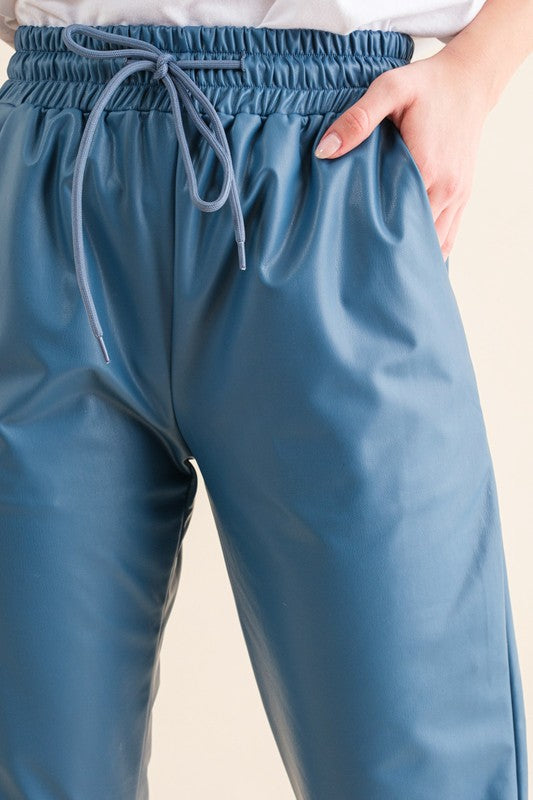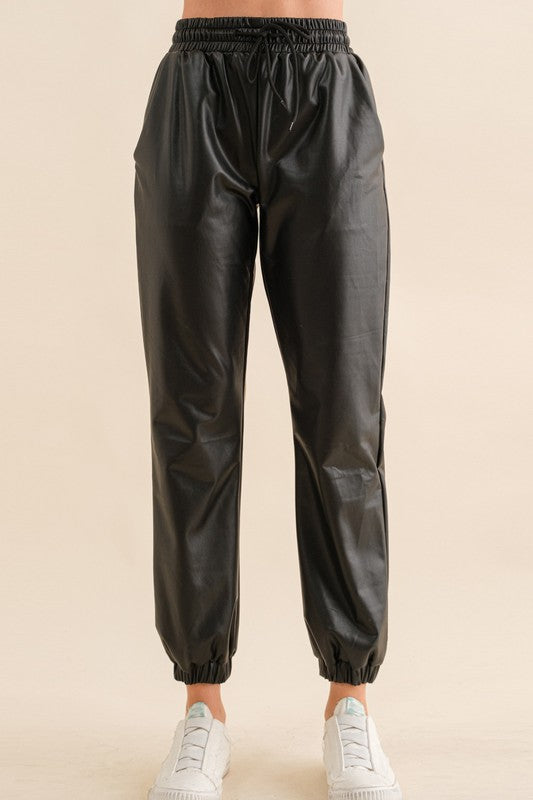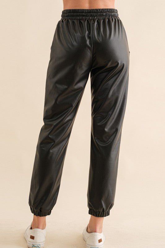 Pu Leather Jogger Pants